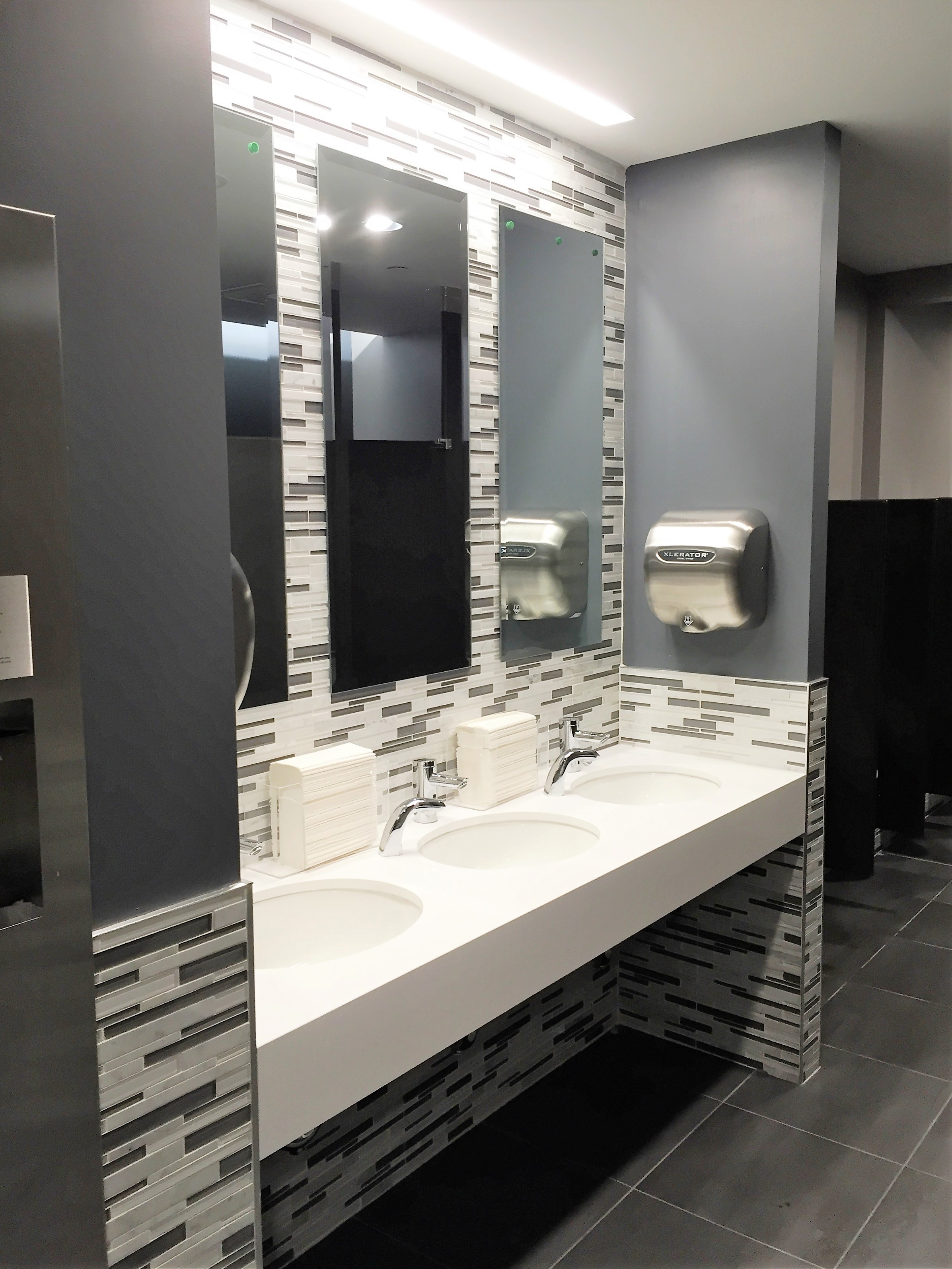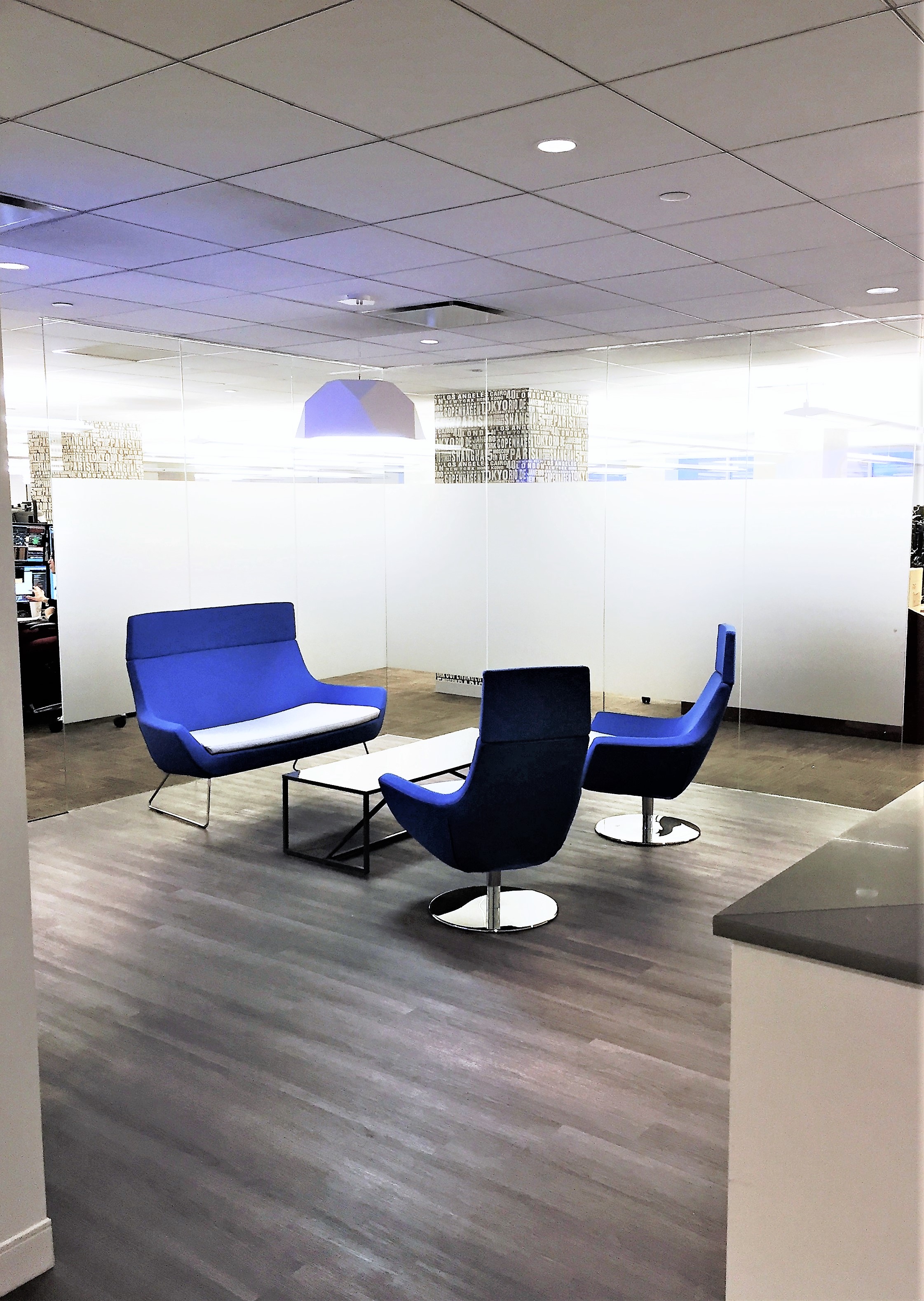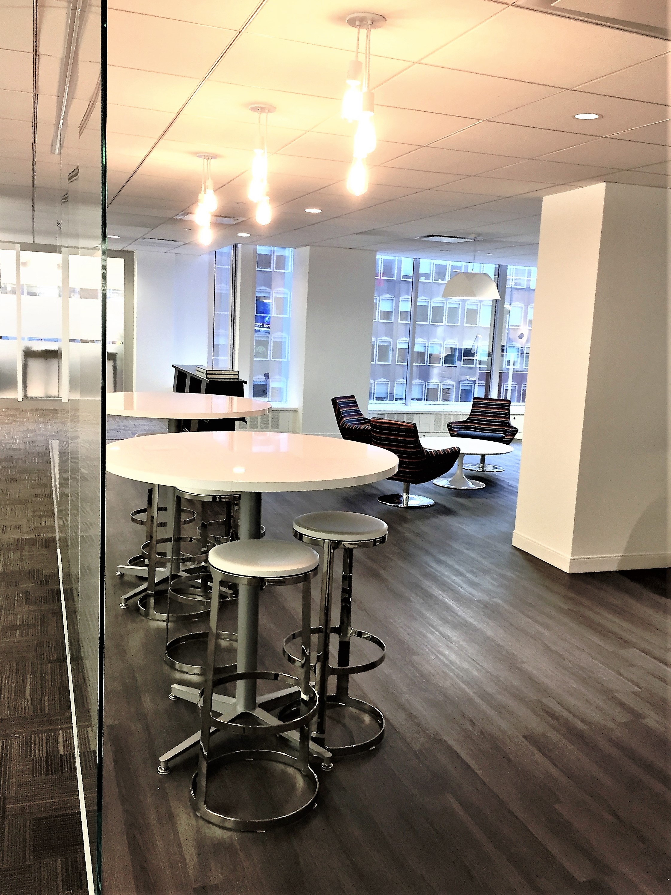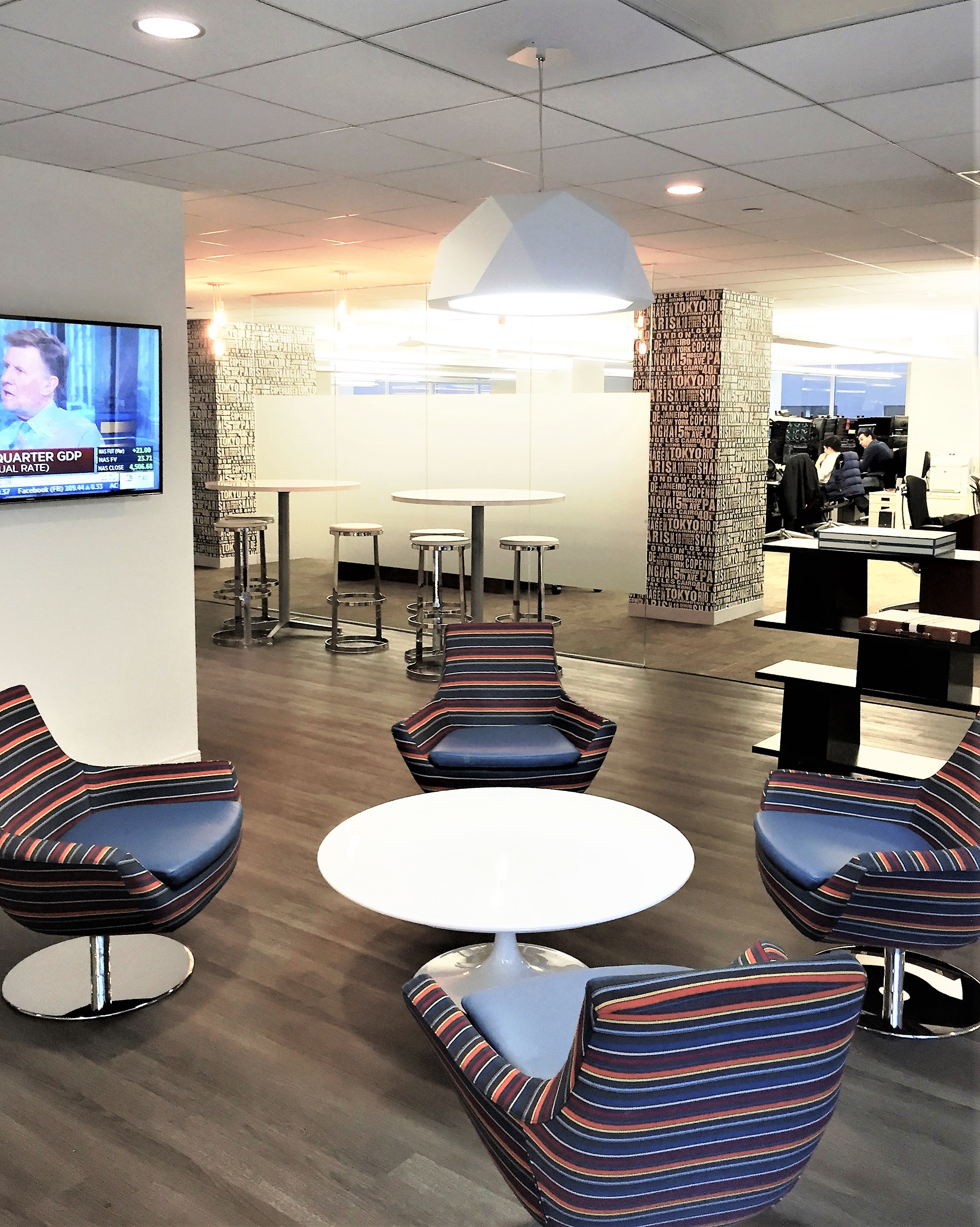 Renovation of 5th Floor Trading/Office Spaces and Core Toilets, Luxurious Pantry/Lounge Area complete with plank flooring, privacy glass, and state-of-the-art appliances and fixtures for employee utilization and enjoyment. Complete modernization of all core bathrooms with cutting-edge ceramic tiles, and electronic water saving bathroom fixtures. Extensive value engineering of the mechanical systems to improve performance to suit the company and employees growing needs. Construction performed while occupied and operational.